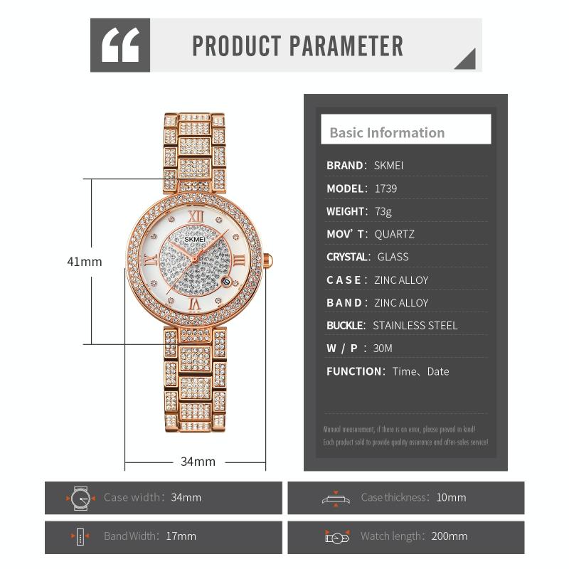 SKMEI 1739 Γυναικείο Ρολόι Quartz με Ροζ Χρυσό Καντράν & Ρωμαϊκούς Αριθμούς (SKMEI)