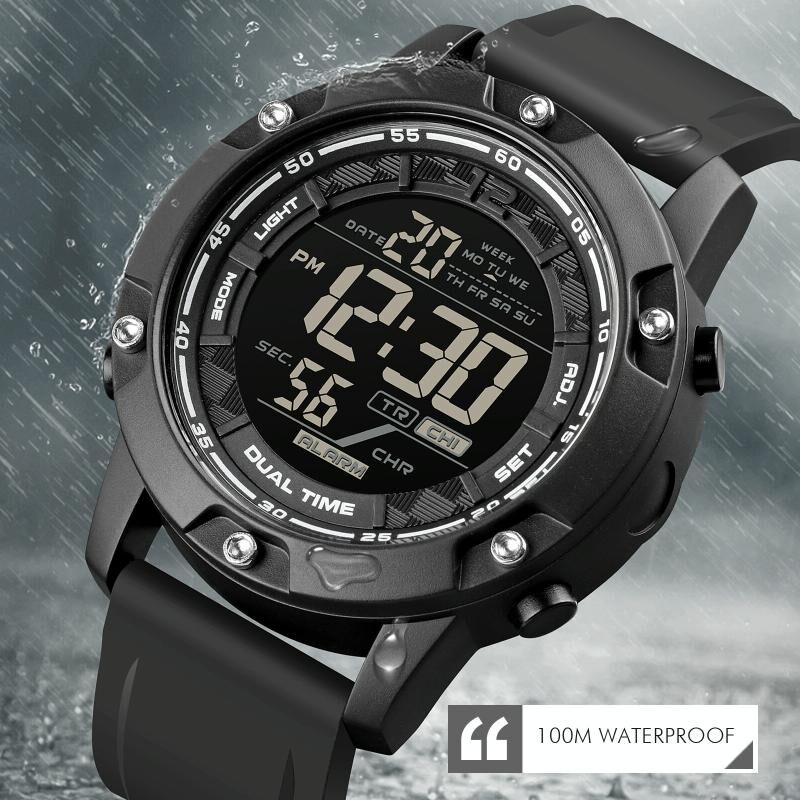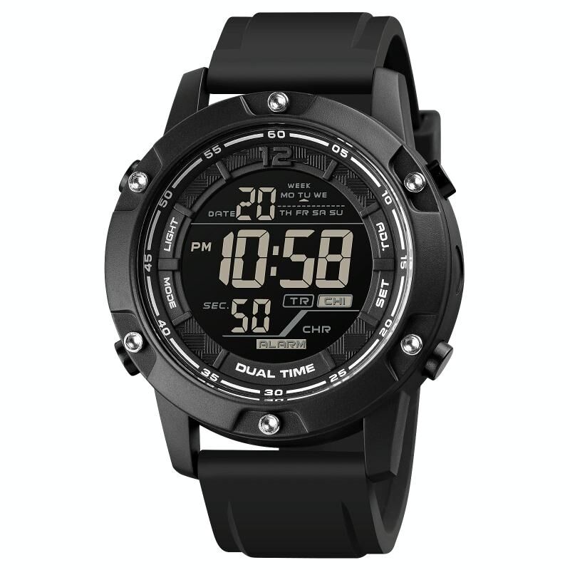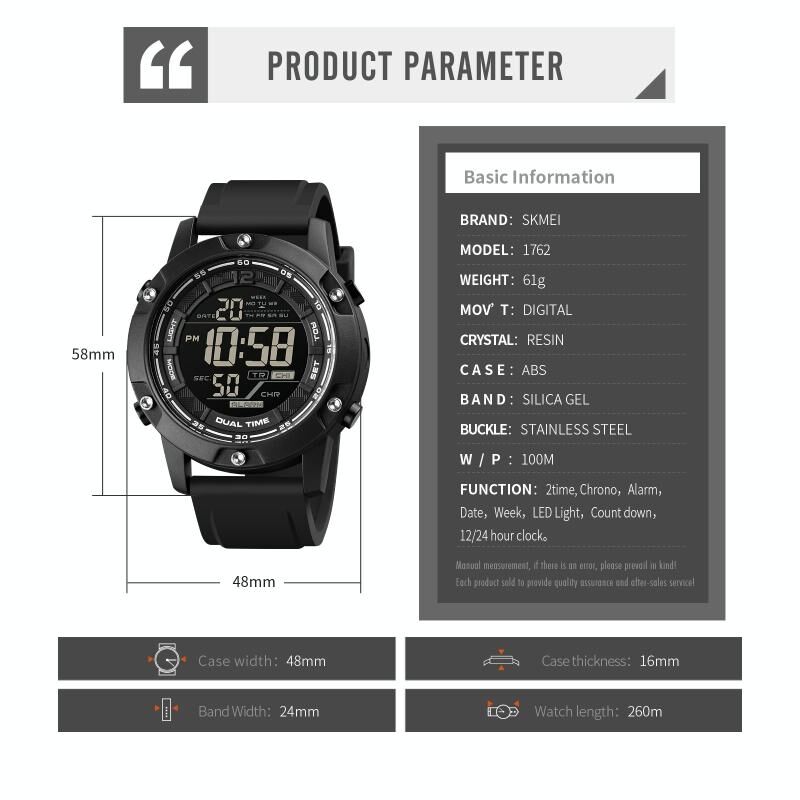 SKMEI 1762 Τριπλό Στρογγυλό LED Διπλή Ώρα Ψηφιακή Ένδειξη Αδιάβροχο Φωτεινό Ηλεκτρονικό Ρολόι (Μαύρο) (SKMEI)