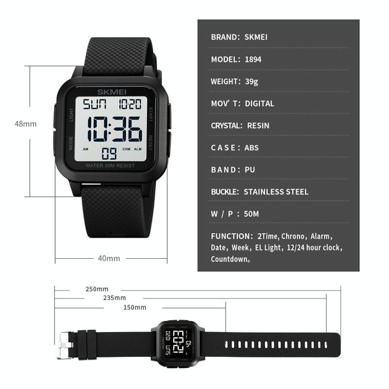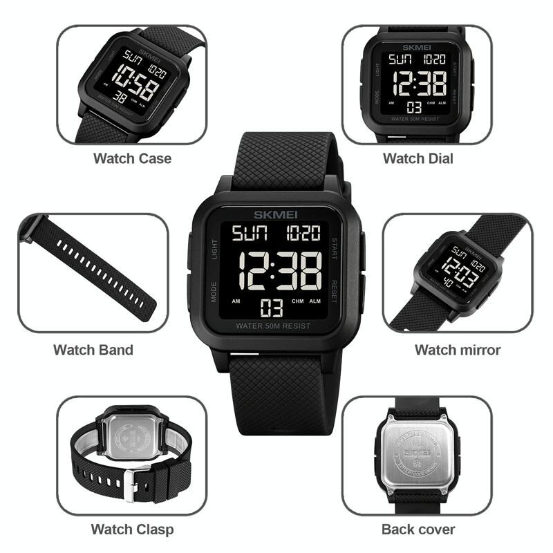 1. Λειτουργία: Ώρα, χρονογράφος, εμφάνιση ημέρας της εβδομάδας, κανονικός ξυπνητήρι, φωτεινότητα, χρονομέτρηση αντίστροφης μέτρησης