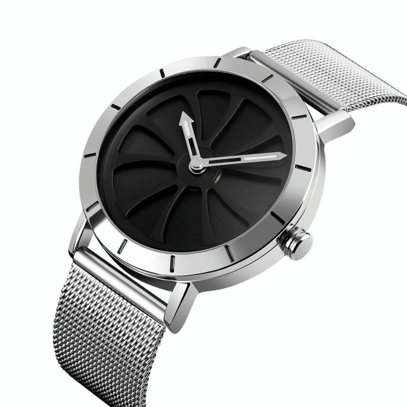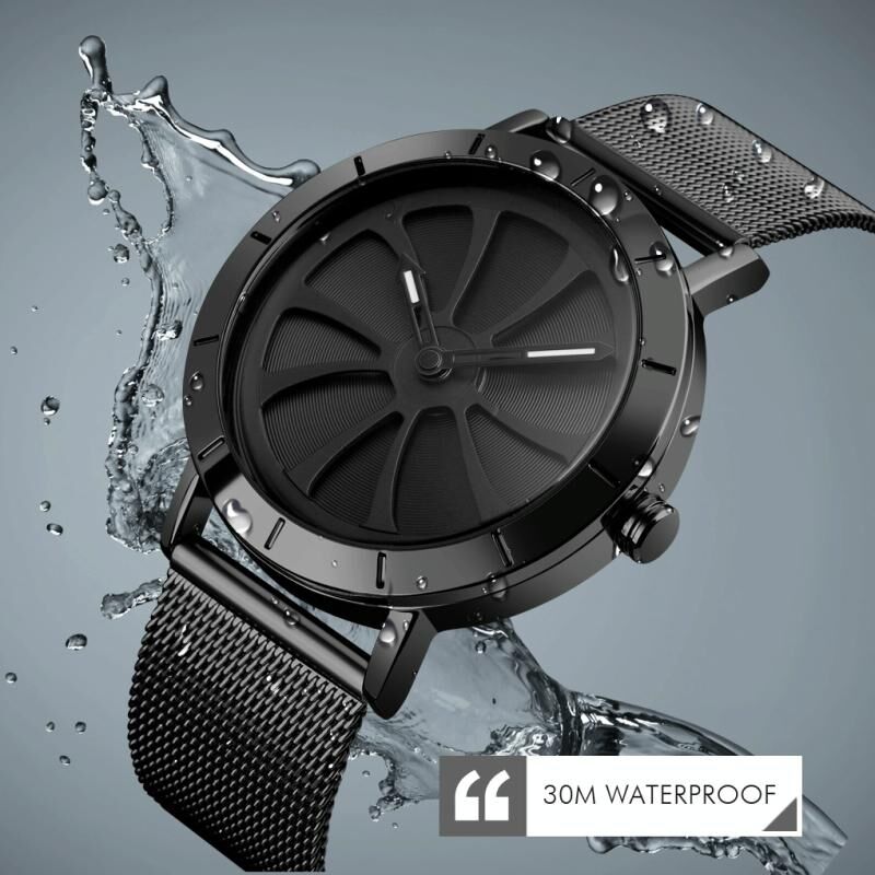 SKMEI 9204 Μόδα Σκελετός Περιστρεφόμενο Καντράν Αδιάβροχο Επιχειρηματικό Πλέγμα Ζώνης Κουάρτζ Ρολόι Ανδρικό (Χρυσό Ρόδι) (SKMEI)