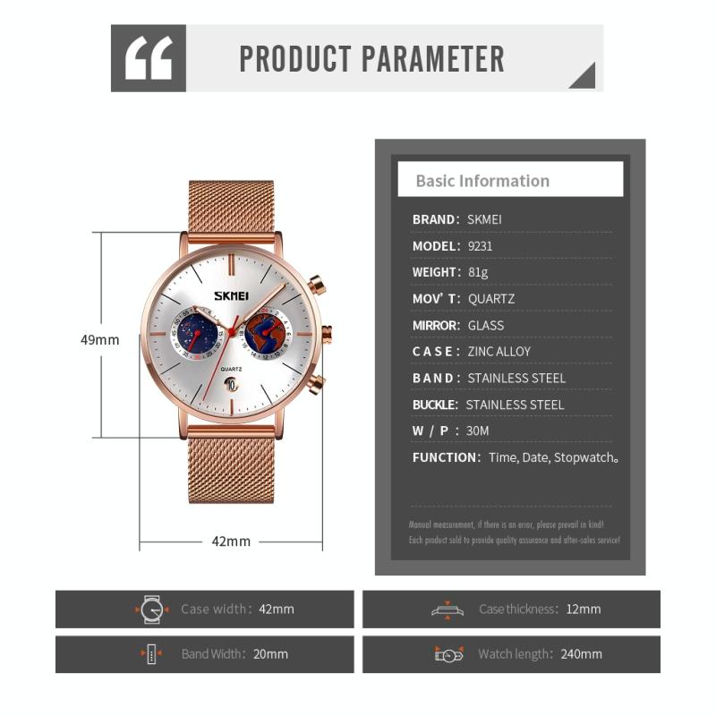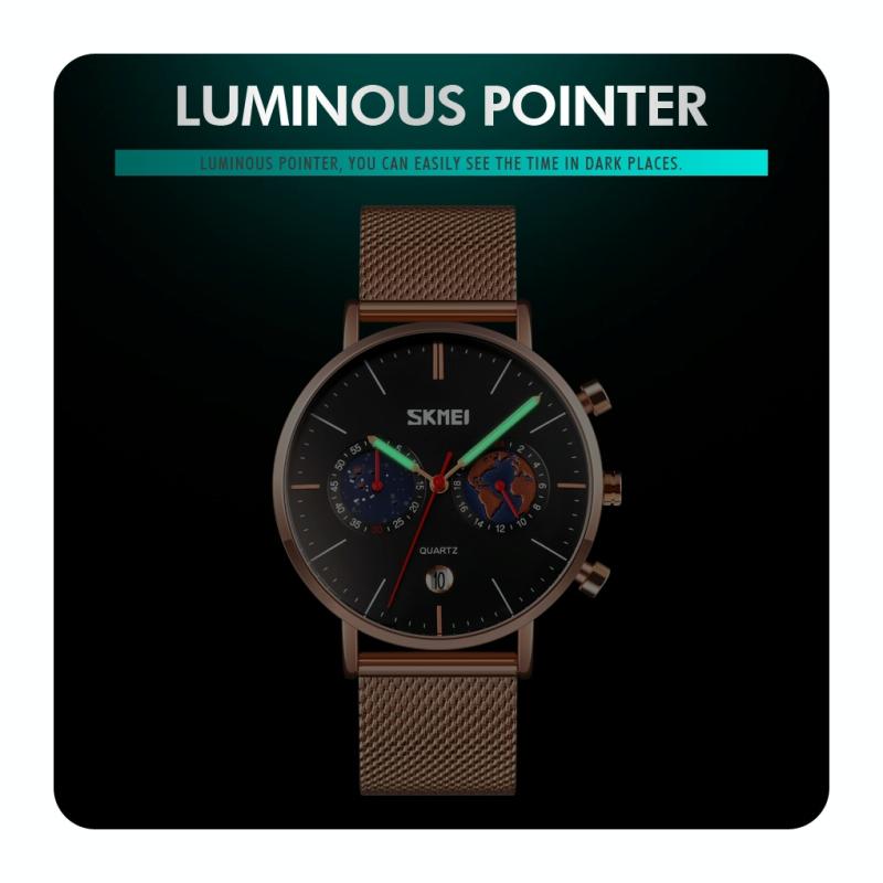 SKMEI 9231 Ανδρικό ρολόι με σχέδιο χάρτη, ημερολόγιο, χρονογράφο και λουρί από ανοξείδωτο ατσάλι (Μαύρο) (SKMEI)