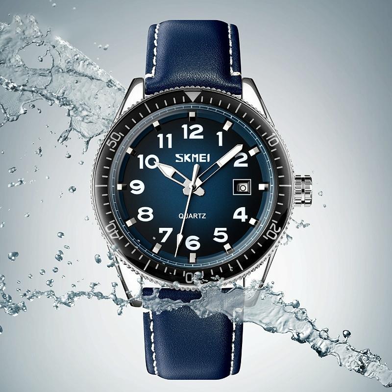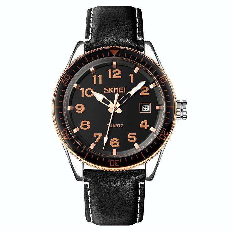 SKMEI 9232 Ανοξείδωτη ατσάλινη πόρπη, καθρέφτης γυαλιού, αδιάβροχο ρολόι χαλαζία (Ασημί περίβλημα, Μαύρη επιφάνεια) (SKMEI)