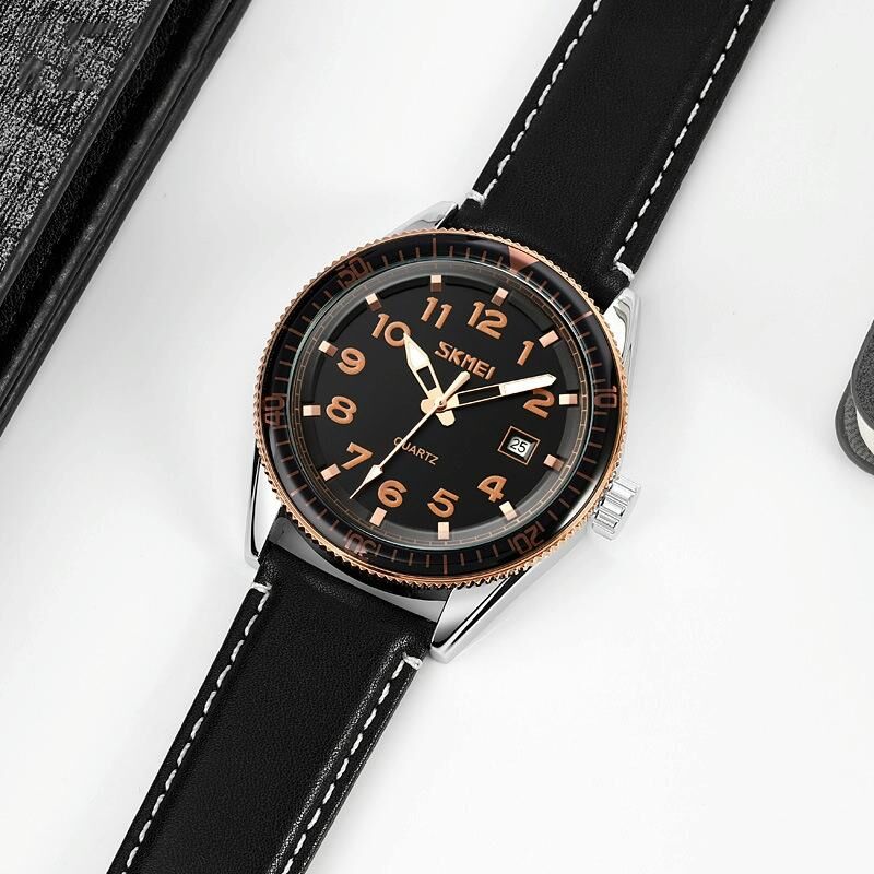 SKMEI 9232 Ανοξείδωτη ατσάλινη πόρπη, καθρέφτης γυαλιού, αδιάβροχο ρολόι χαλαζία (Ασημί περίβλημα, Μαύρη επιφάνεια) (SKMEI)