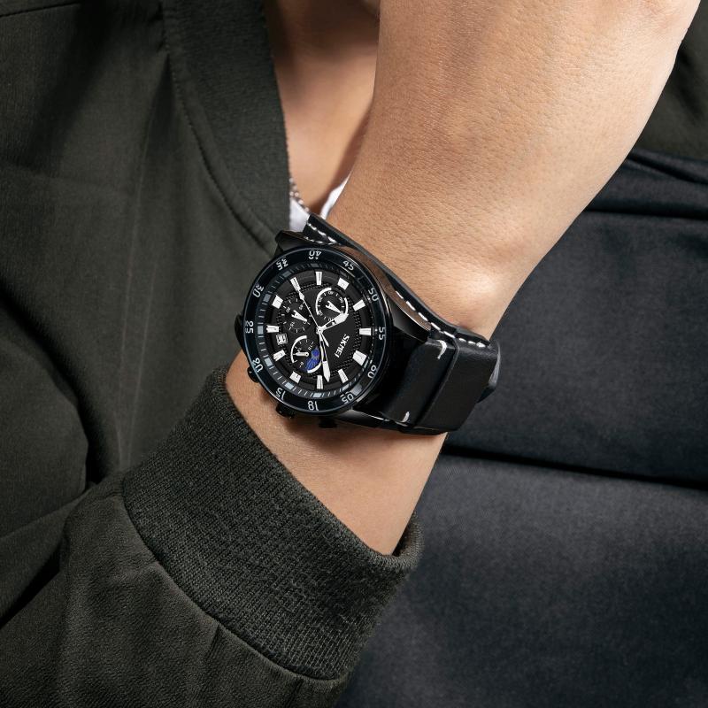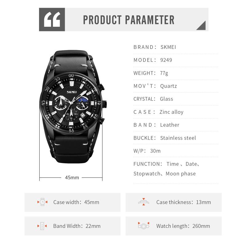 SKMEI 9249 Men Moonphase Calendar Stopwatch Leather Strap Quartz Watch(Black) (SKMEI)