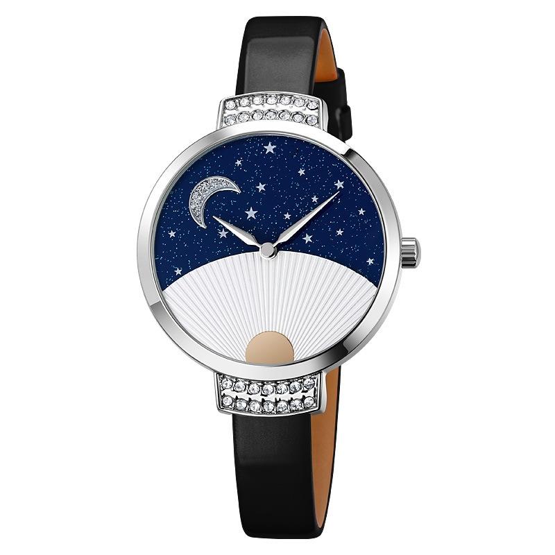 SKMEI 9279 Ανοξείδωτη ατσάλινη πόρπη, αυθεντική δερμάτινη λουρί, αδιάβροχο ρολόι χαλαζία (Μπλε) (SKMEI)