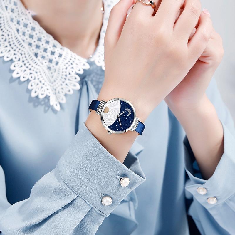 SKMEI 9279 Ανοξείδωτη ατσάλινη πόρπη, αυθεντική δερμάτινη λουρί, αδιάβροχο ρολόι χαλαζία (Μπλε) (SKMEI)