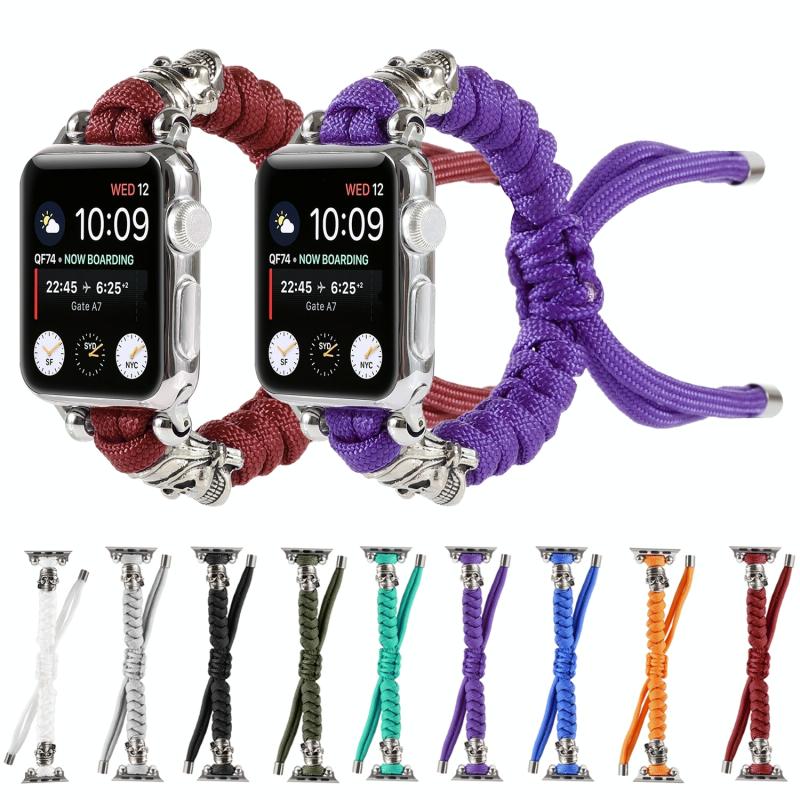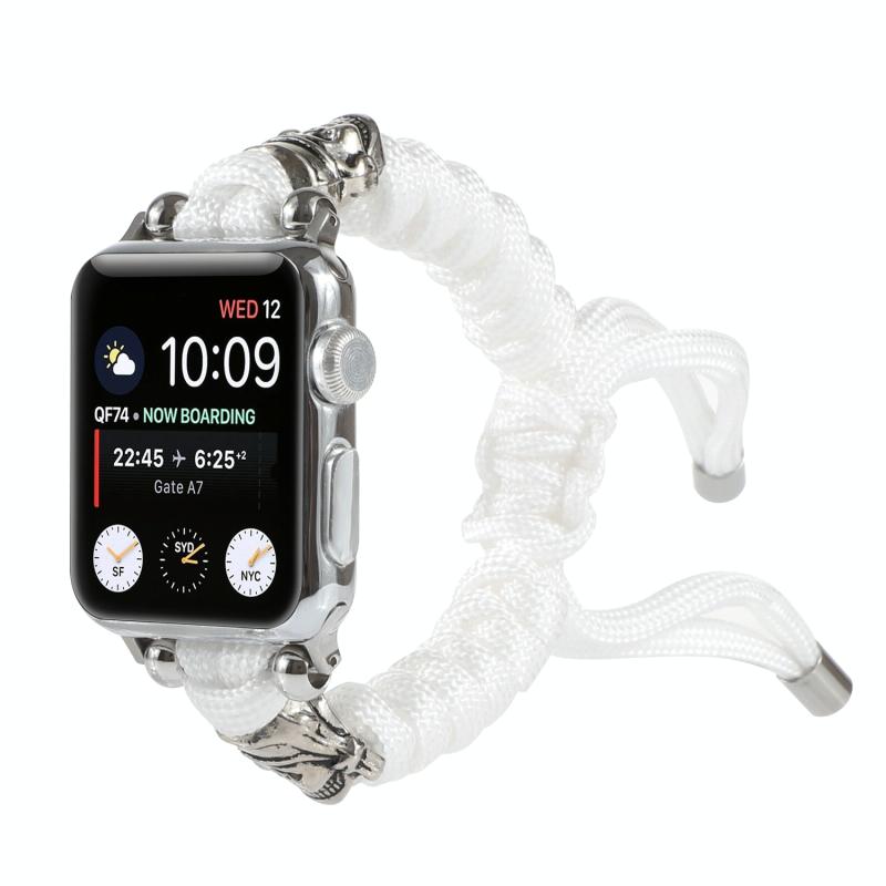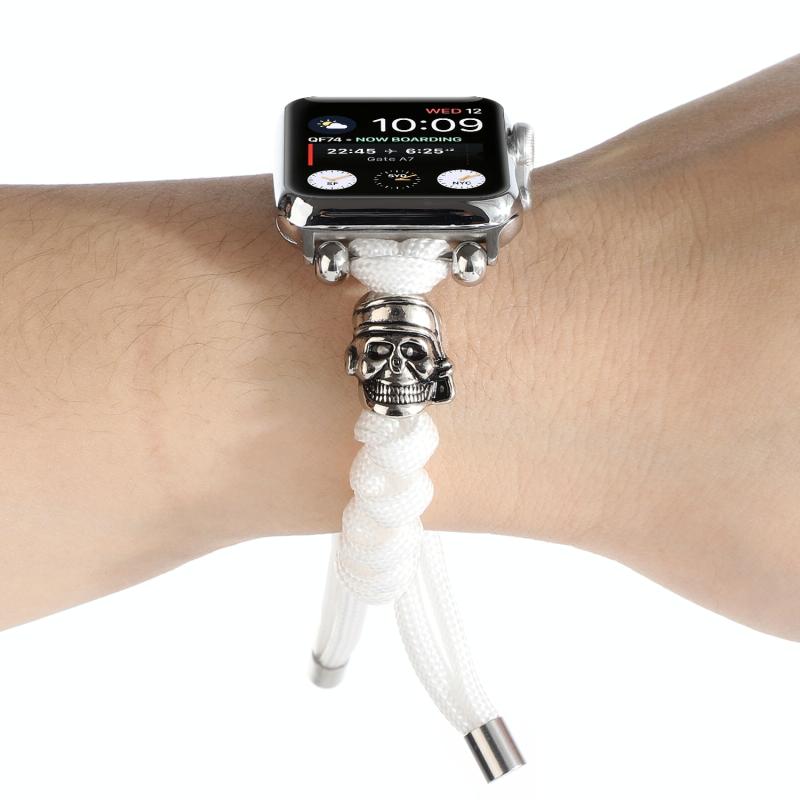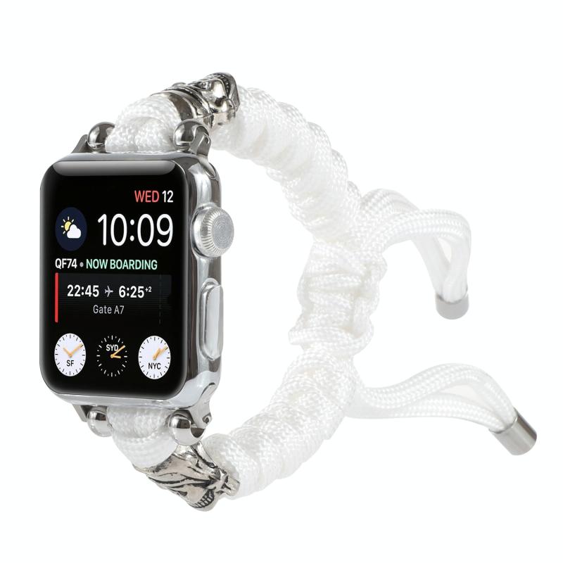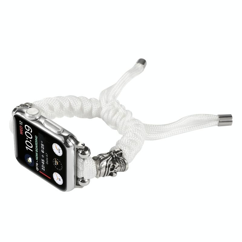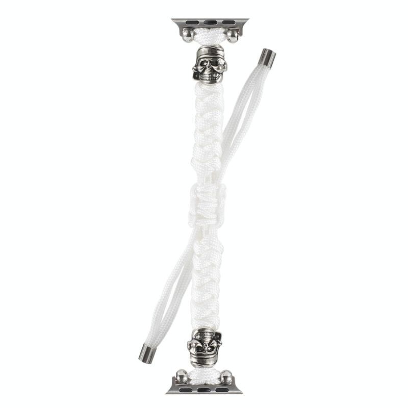 Λουρί ρολογιού με κορδόνι παρακορδίου, πλεγμένο, με σχέδιο κρανίου για Apple Watch Series 9&8&7 41mm / SE 3&SE 2&6&SE&5&4 40mm / 3&2&1 38mm (Λευκό)