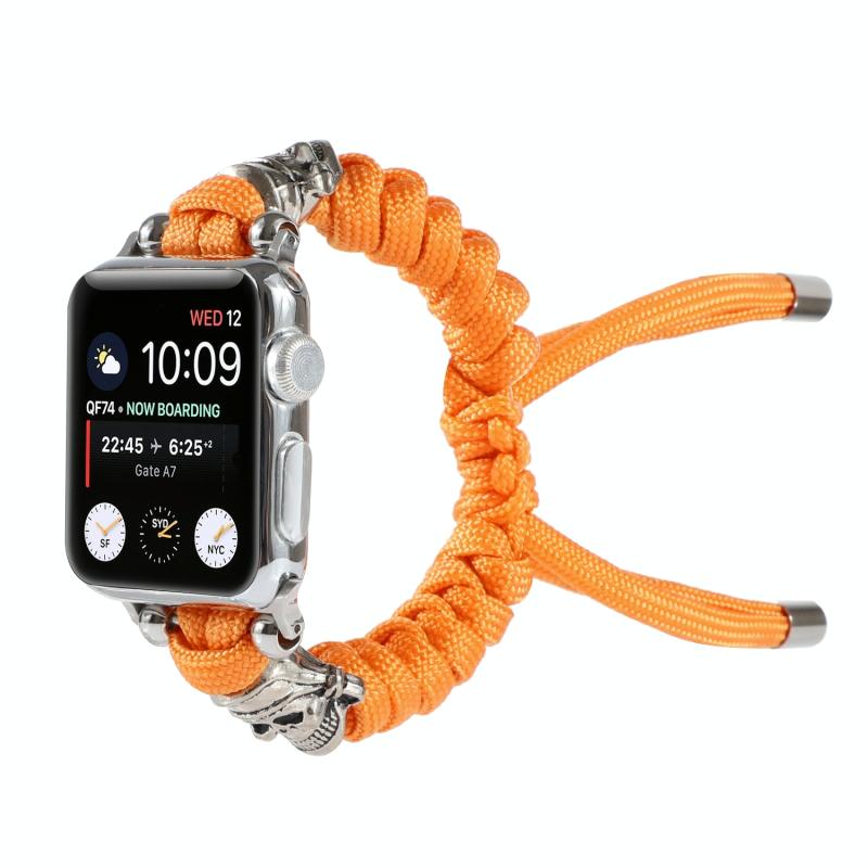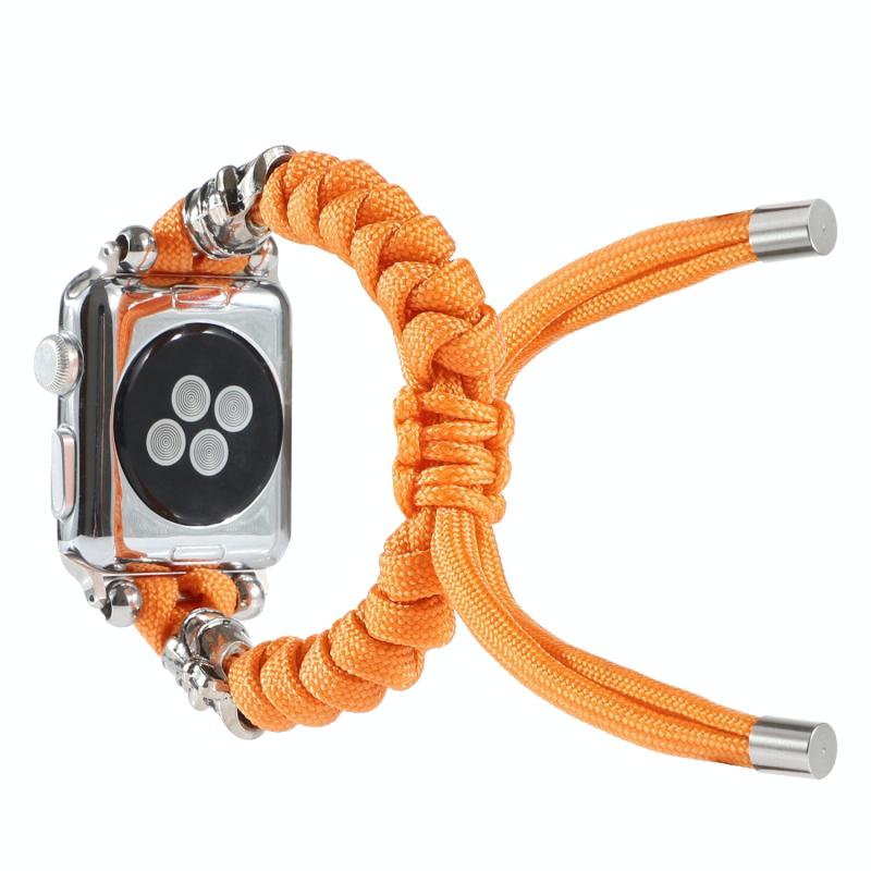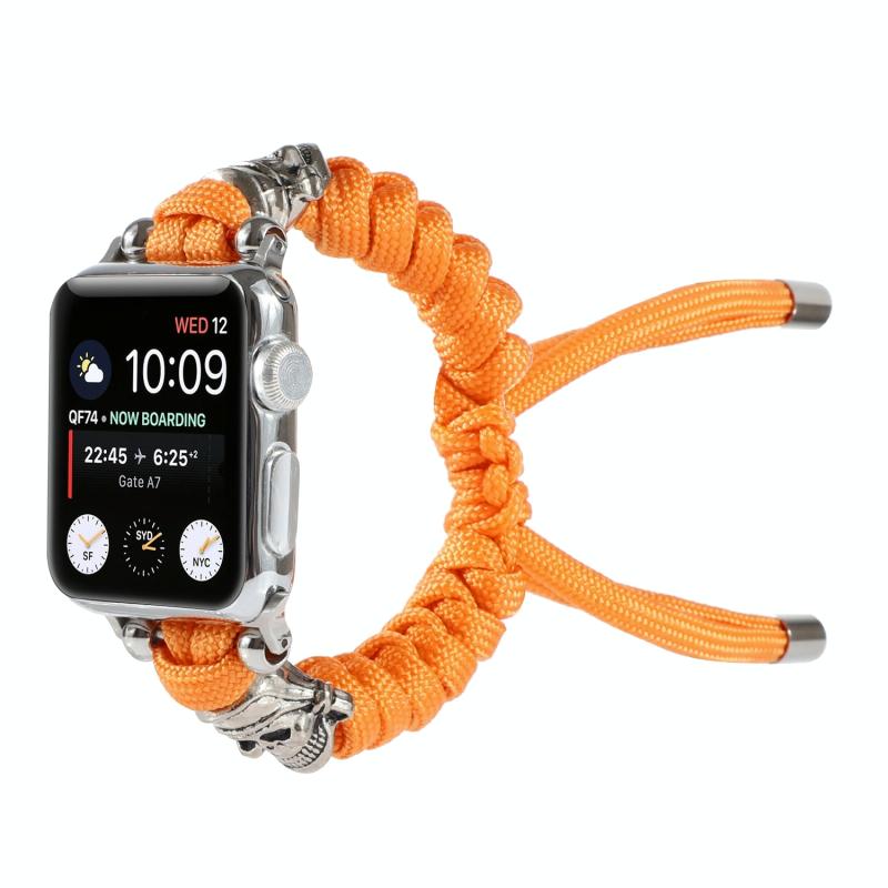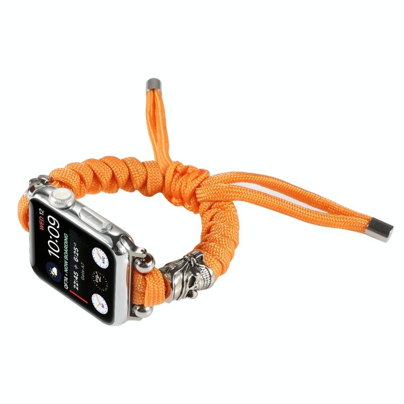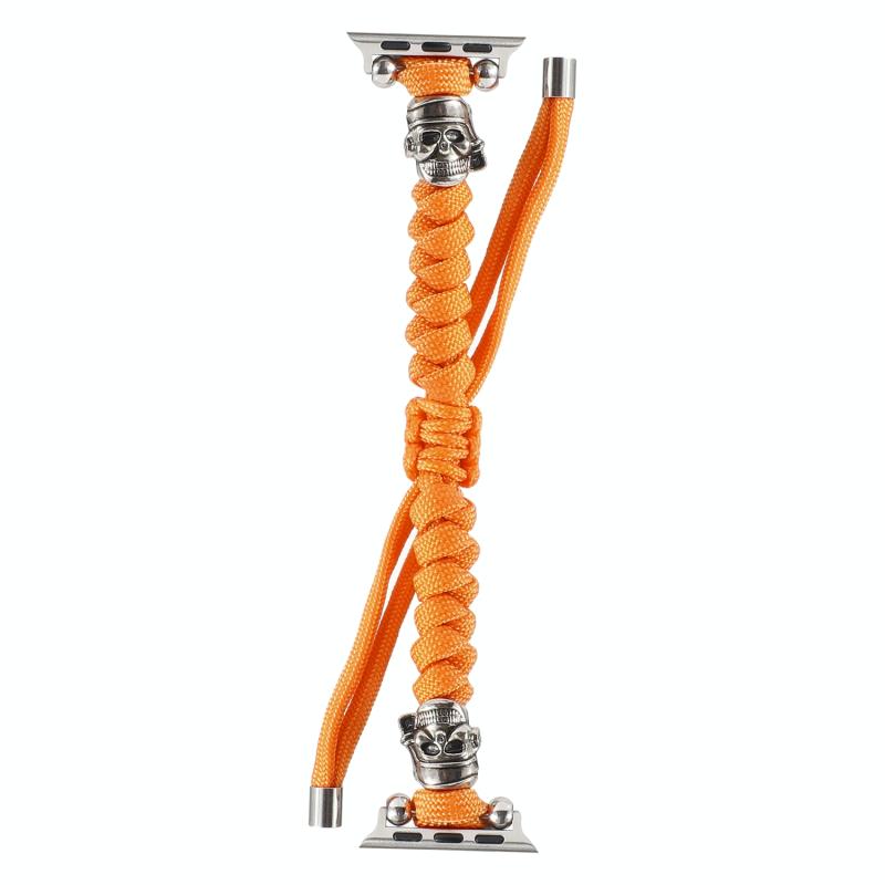 Λουρί ρολογιού με κορδόνι παρακορδίου, πλεγμένο, με σχέδιο κρανίου για Apple Watch Ultra 49mm & Watch Ultra 2 49mm / Series 9 & 8 & 7 45mm / SE 3 & SE 2 & 6 & SE & 5 & 4 44mm / 3 & 2 & 1 42mm (Πορτοκαλί)