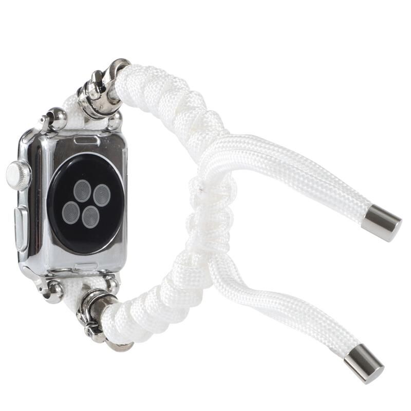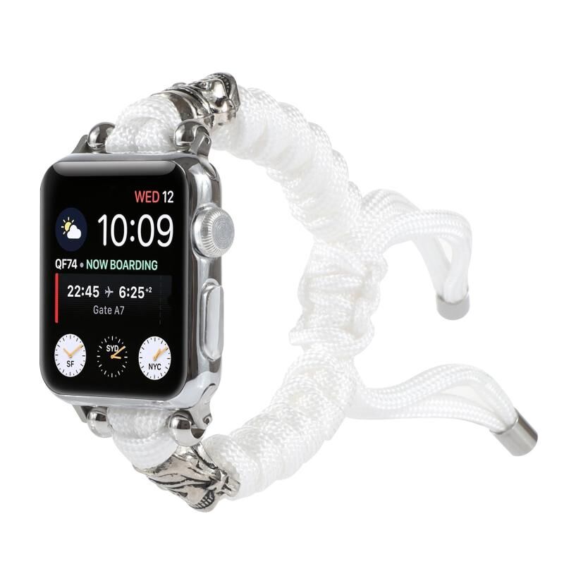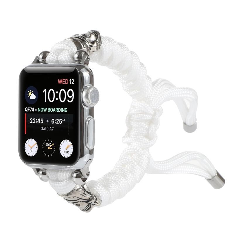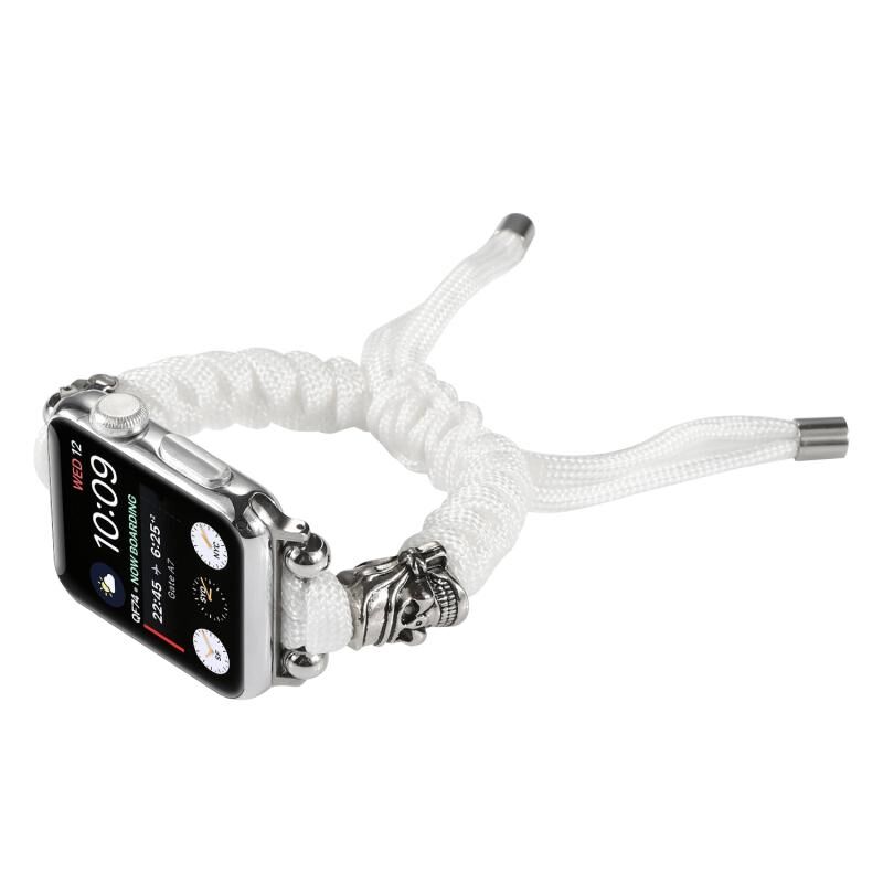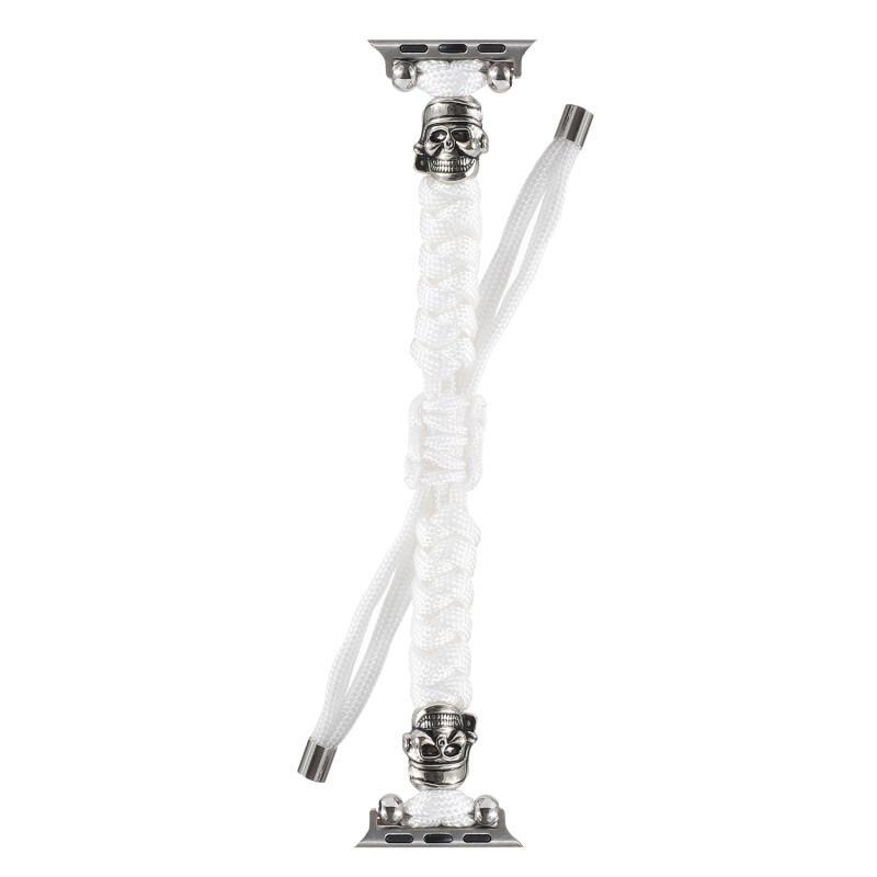 Λουρί ρολογιού με κορδόνι παρακορδίου, πλεγμένο, με σχέδιο κρανίου για Apple Watch Ultra 49mm & Watch Ultra 2 49mm / Series 9 & 8 & 7 45mm / SE 3 & SE 2 & 6 & SE & 5 & 4 44mm / 3 & 2 & 1 42mm (Λευκό)
