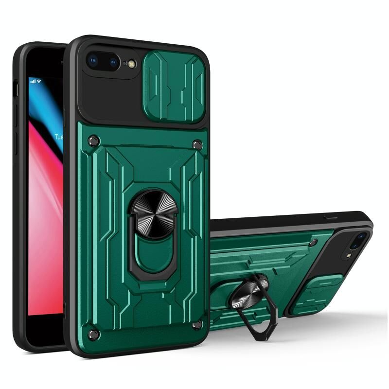 Sliding Camshield Card Phone Case For iPhone 7 Plus / 8 Plus(Dark Green)