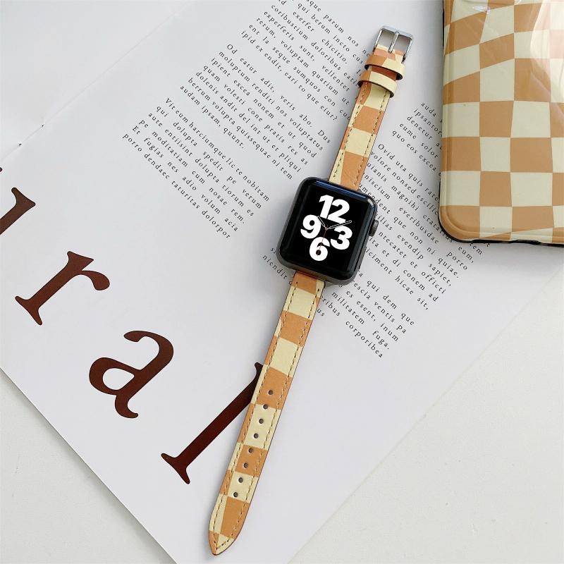 Λεπτό Δερμάτινο Λουράκι για Apple Watch σε Σχέδιο Σκακιέρας για Σειρά 7 41mm/6&SE&5&4 40mm/3&2&1 38mm (Μωβ)