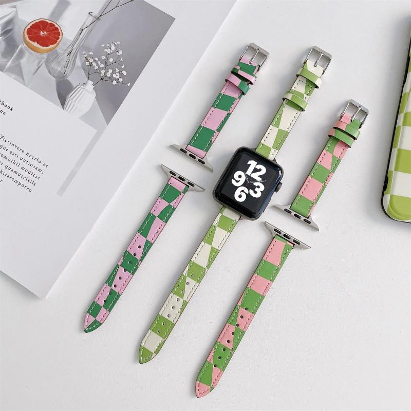 Λεπτό Δερμάτινο Λουράκι για Apple Watch σε Σχέδιο Σκακιέρας για Σειρά 7 45mm/6&SE&5&4 44mm/3&2&1 42mm (Μωβ)