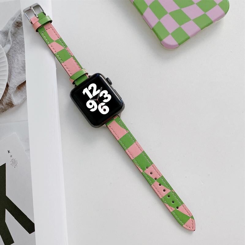Λεπτό Δερμάτινο Λουράκι για Apple Watch σε Σχέδιο Σκακιέρας για Σειρά 7 45mm/6&SE&5&4 44mm/3&2&1 42mm (Μωβ)