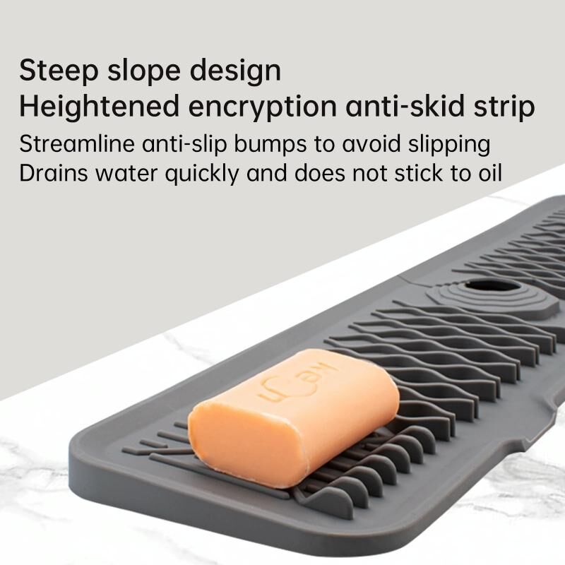 3. The sloped splash guard has a fast drain mode and an extra-wide drain port, ensuring that your kitchen sink protector stays dry and free of water stains. In addition, it can also double as a sink faucet pad and sink organizer, providing a storage station for your kitchen essentials.