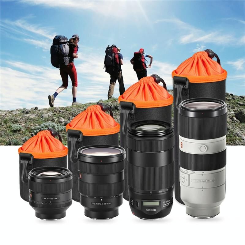 SLR Camera Lens Bag Micro Single Lens Bag Lens Inner Bile Bag Waterproof Protective Case Plus Velvet Thickening, Diameter: 8.5cm, Height: 10cm(Orange)