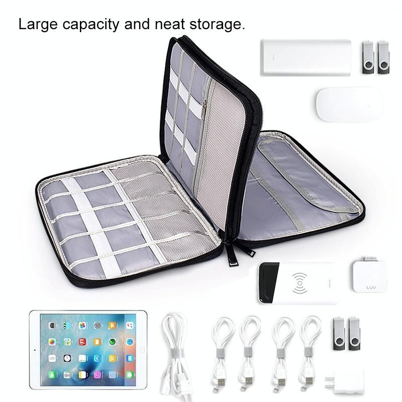 SM01 Αδιάβροχο καλώδιο δεδομένων πολλαπλών λειτουργιών διπλής στρώσης καλώδιο ακουστικών U δίσκου ψηφιακών αξεσουάρ αποθήκευσης τσάντα, μέγεθος: L (Ναυτικό μπλε)