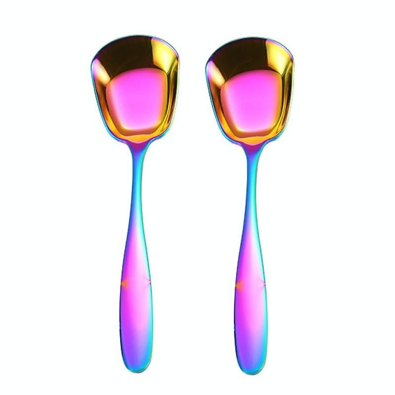 Μικρό κουτάλι από ανοξείδωτο χάλυβα 304 Γυαλιστερό παχύρρευστο επίπεδη κεφαλή επίπεδη βάση που σερβίρει κουτάλι, χρώμα: πολύχρωμο