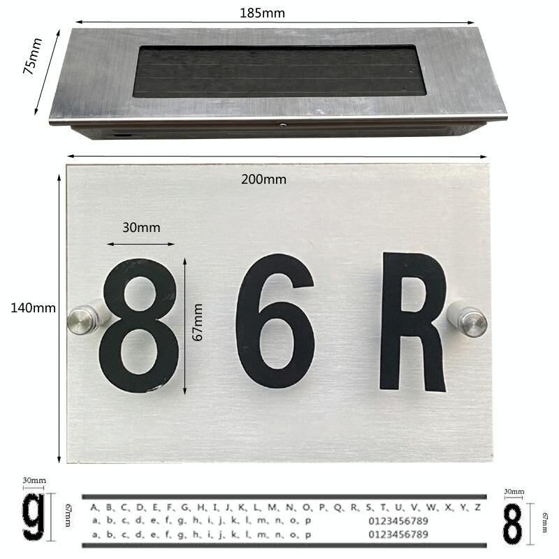 12. Μικρό μέγεθος: φωτιστικό: 18.5 x 7.5 cm, πινακίδα: 20 x 14 cm, αριθμοί: 6.7 x 3 cm