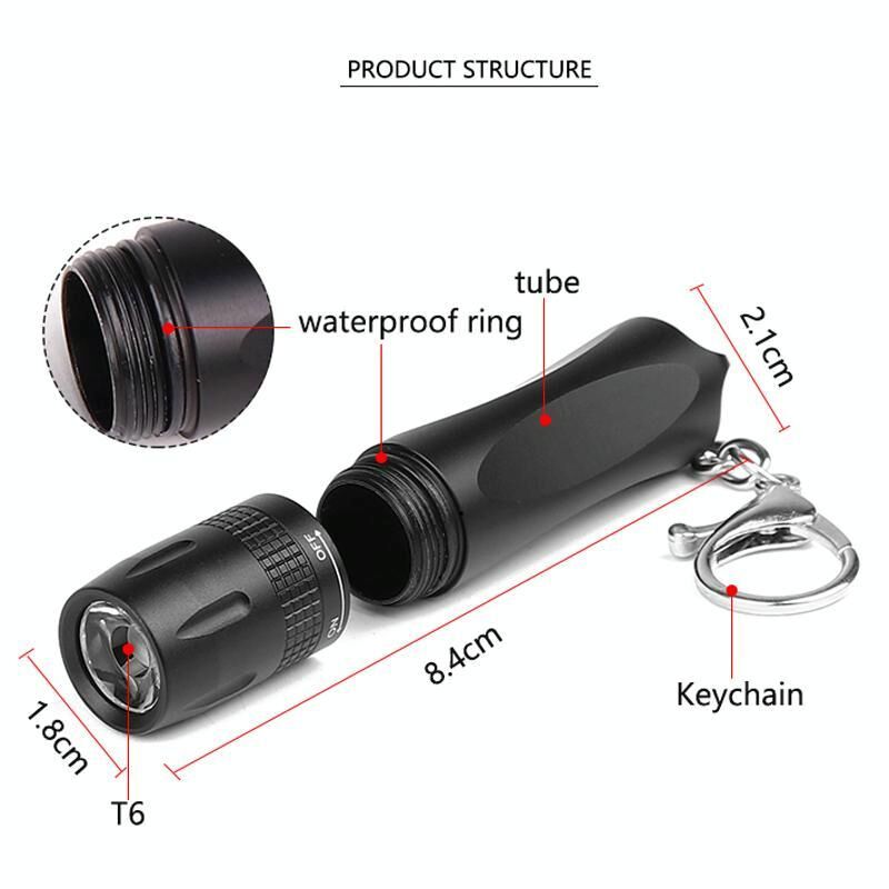 Μικρός φορητός φακός LED με μπρελόκ (Μαύρο)