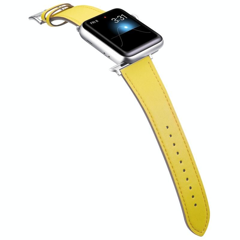 Λουρί Δερμάτινου Ρολογιού για Apple Watch Ultra 49mm & Watch Ultra 2 49mm / Series 9 & 8 & 7 45mm / SE 3 & SE 2 & 6 & SE & 5 & 4 44mm / 3 & 2 & 1 42mm (Κίτρινο)
