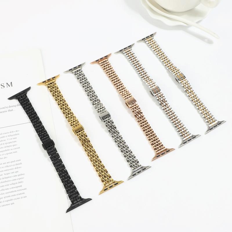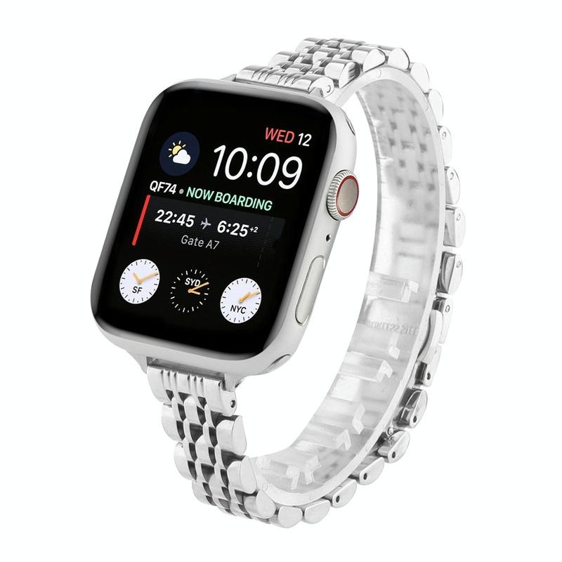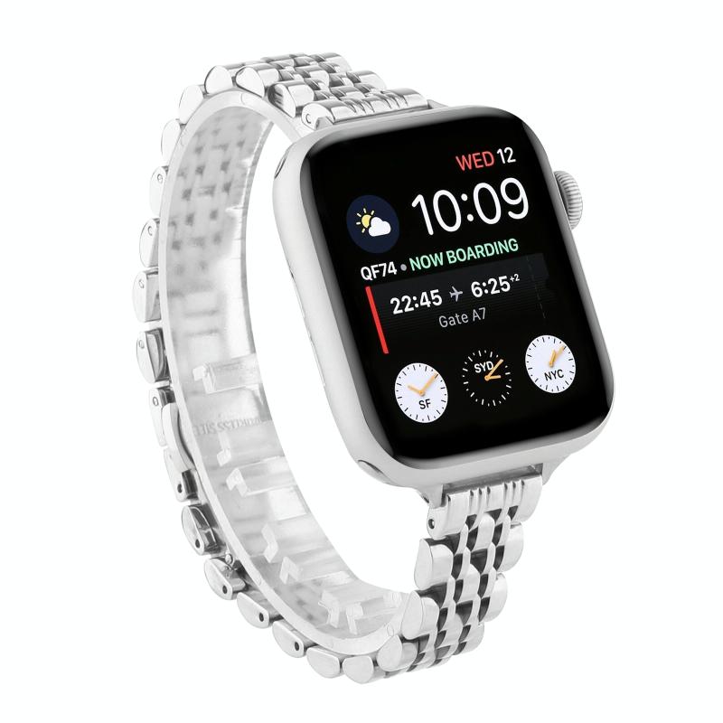 Λουρί ρολογιού για Apple Watch Ultra 49mm & Watch Ultra 2 49mm / Series 9 & 8 & 7 45mm / SE 3 & SE 2 & 6 & SE & 5 & 4 44mm / 3 & 2 & 1 42mm (Χρυσό Ροζέ) με λεπτή μέση και επτά χάντρες από ανοξείδωτο ατσάλι. (Ασημί)
