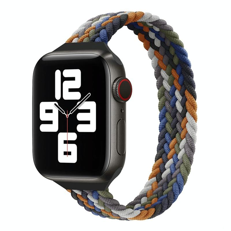 Λουρί ρολογιού πλεξούδας νάιλον με μονό βρόχο και λεπτή μέση για Apple Watch Series 9&8&7 41mm / SE 3&SE 2&6&SE&5&4 40mm / 3&2&1 38mm, Μέγεθος: M 145mm (Καουμπόικο πολύχρωμο)