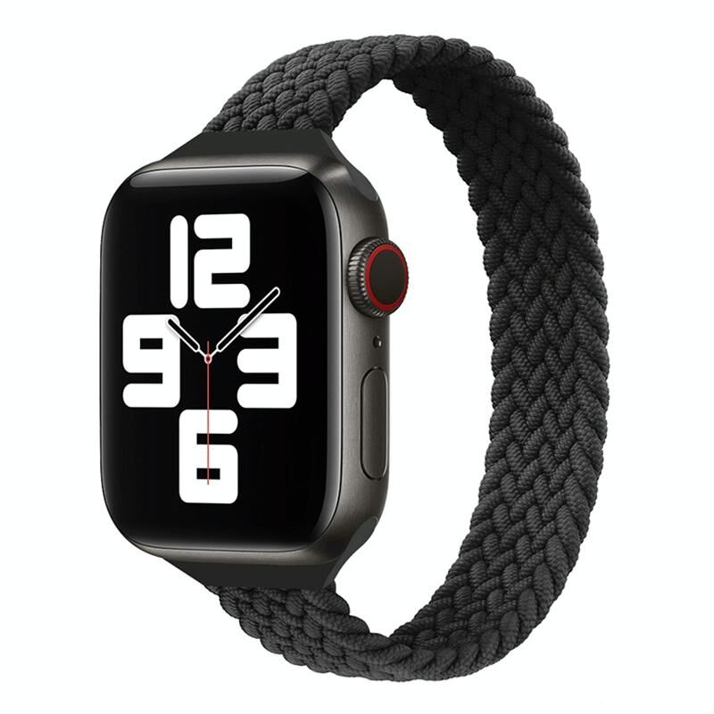 Λουρί για Apple Watch Σειράς 9&8&7 41mm / SE 3&SE 2&6&SE&5&4 40mm / 3&2&1 38mm, με λεπτή θηλιά, πλεγμένο από νάιλον, Μέγεθος: S 135mm (Μαύρο)