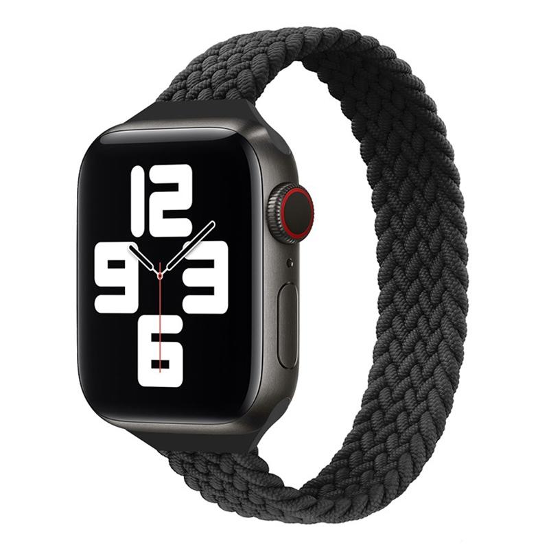 Λουρί για Apple Watch Σειράς 9&8&7 41mm / SE 3&SE 2&6&SE&5&4 40mm / 3&2&1 38mm, με λεπτή πλέξη νάιλον και μονό βρόχο, Μέγεθος: XS 130mm (Μαύρο)