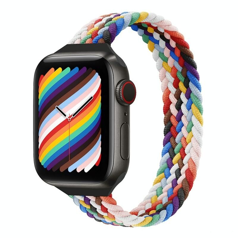 Λουρί για Apple Watch Σειράς 9&8&7 41mm / SE 3&SE 2&6&SE&5&4 40mm / 3&2&1 38mm, με λεπτή θηλιά από νάιλον, μέγεθος: XS 130mm (Επίσημο Rainbow)