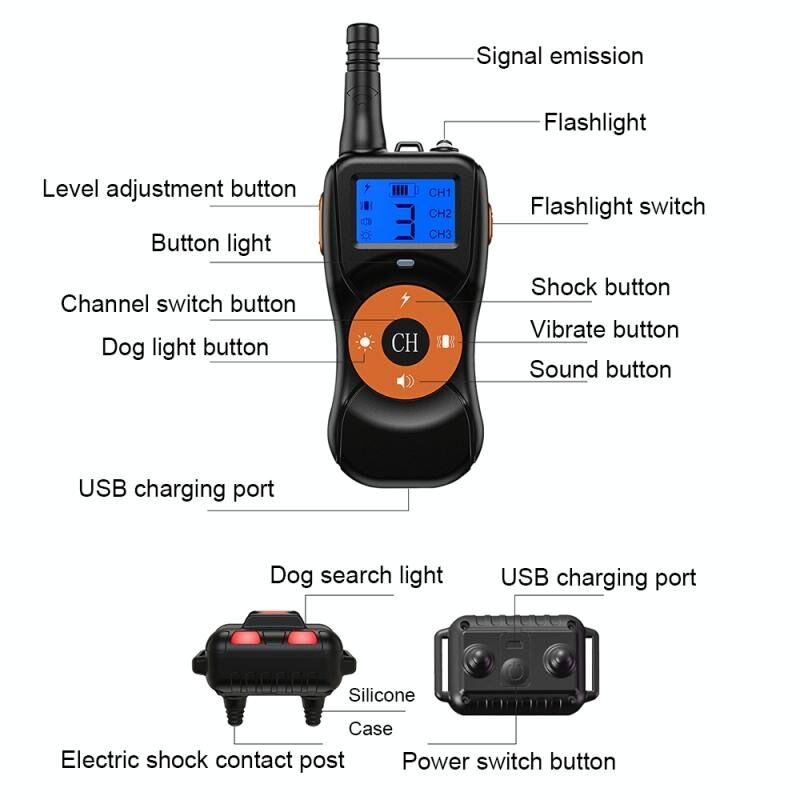 4. Four practical functions: electric shock dog training, vibration dog training, sound dog training, and light dog search.