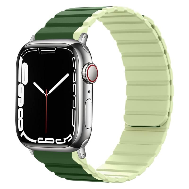 Έξυπνος Μαγνητικός Ιμάντας Σιλικόνης για Apple Watch Ultra 49mm & Watch Ultra 2 49mm / Series 9 & 8 & 7 45mm / SE 3 & SE 2 & 6 & SE & 5 & 4 44mm / 3 & 2 & 1 42mm (Σκούρο Πράσινο + Χορταστικό Πράσινο)