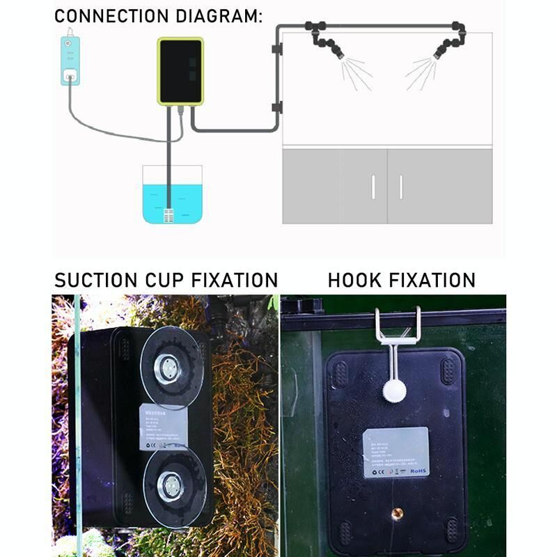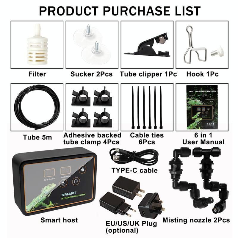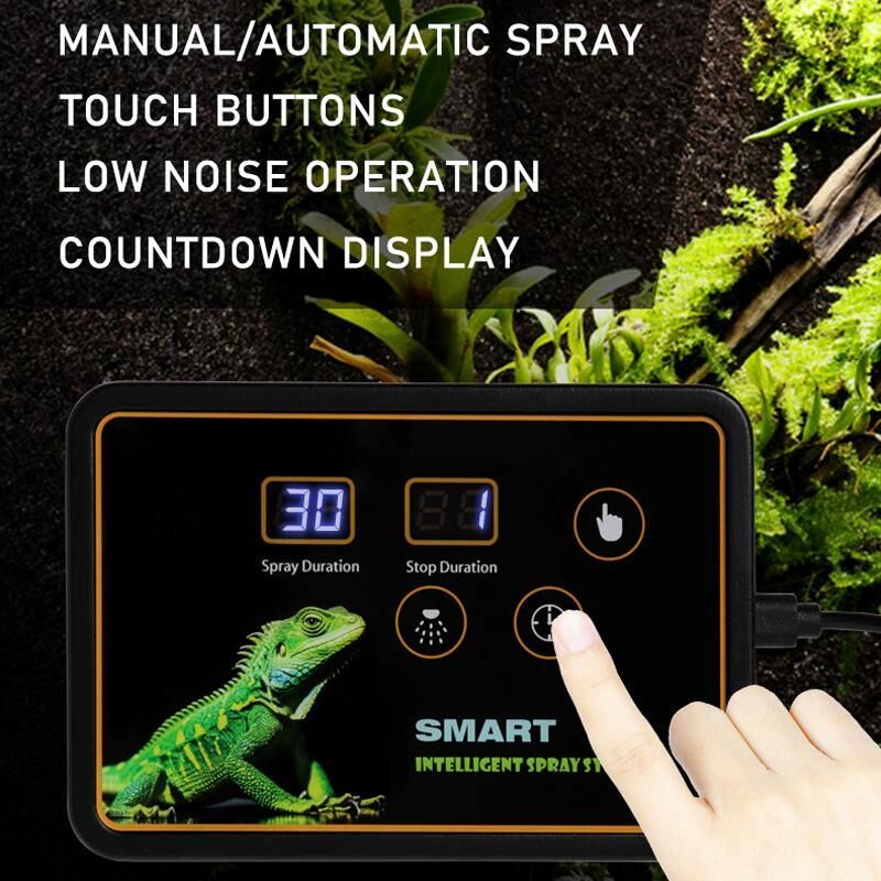 1. Dual atomizing nozzle system: equipped with 2 atomizing nozzles, 360-degree omnidirectional adjustable angle, evenly covering every corner of the rainforest tank