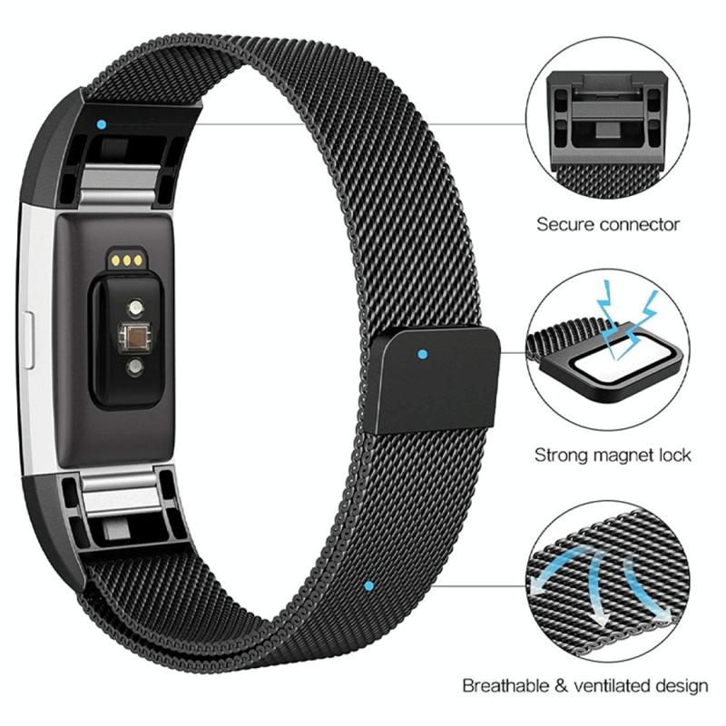 Smart Watch Stainless Steel Watch Band for FITBIT Charge 2, Size: S(Blue)
