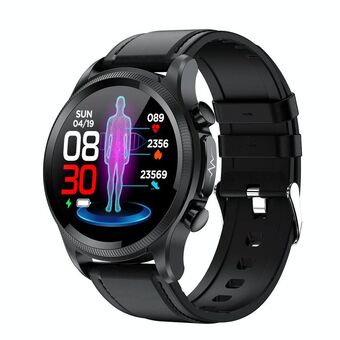 E400 1.39 inch HD Round Screen Leather Strap Smart Watch Supports ECG Monitoring/Non-invasive Blood Sugar(Black)