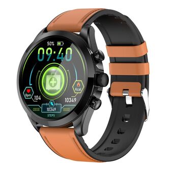 ET440 1.39 inch Color Screen Smart Leather Strap Watch,Support Heart Rate / Blood Pressure / Blood Oxygen / Blood Glucose Monitoring(Brown)