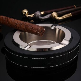HONEST Cigar Ashtray Metal Cowhide Leather Personalized Ashtray, Color: Black+Black (HONEST)