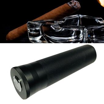 Μεταλλική Θήκη Χούμι για Πούρα, Σωλήνας Υγραντήρα, Κουτί Αποθήκευσης με Ένδειξη Υγρασίας (Μαύρο)