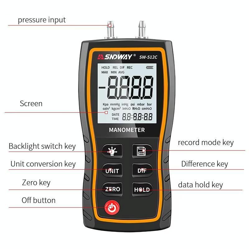 SNDWAY SW-512B Digital Handheld Differential Pressure Gauge Negative Pressure Tester (SNDWAY)