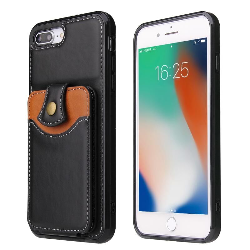 Θήκη πορτοφολιού από μαλακό δέρμα για iPhone 8 Plus / 7 Plus (Μαύρο)