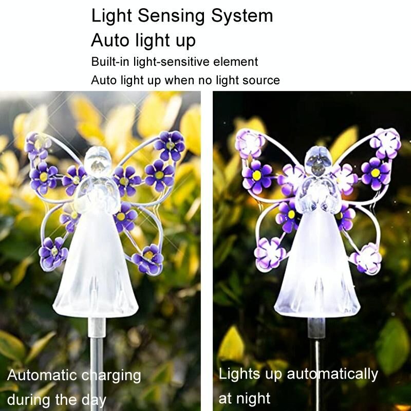 Φωτιστικό ηλιακού αγγέλου για εξωτερικούς χώρους, διακόσμηση κήπου, βεράντας, φωτιστικό με καρφί εδάφους (Μωβ)