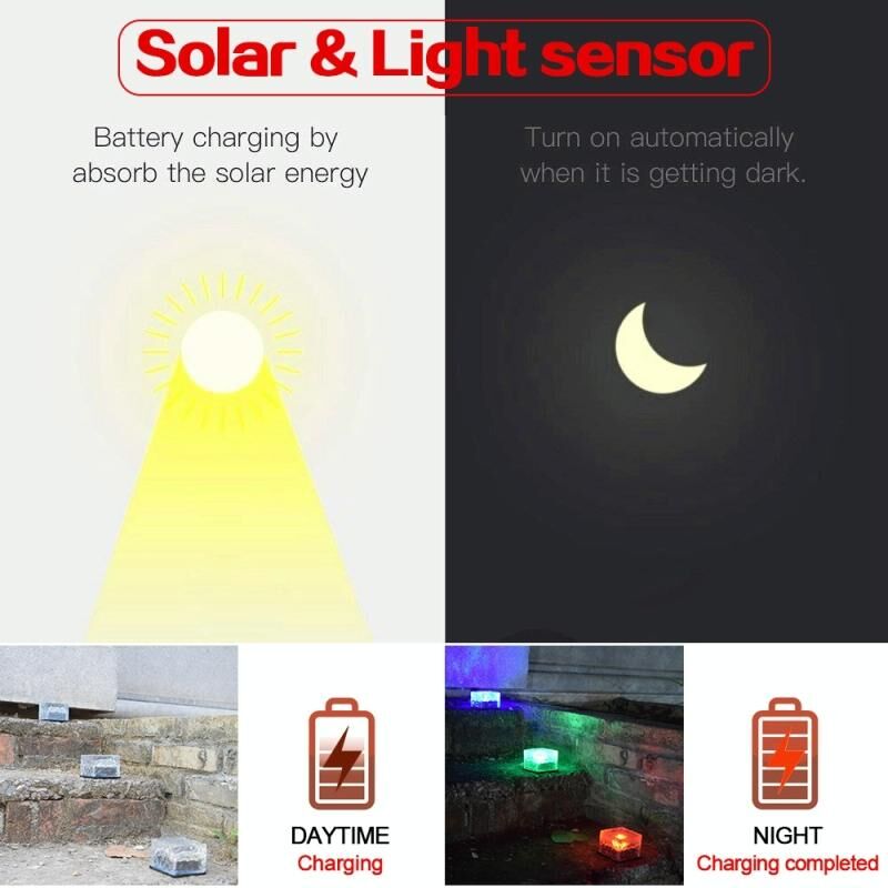 Φωτιστικό LED εξωτερικού χώρου, ηλιακής ενέργειας, τετράγωνο, από σκληρυμένο γυαλί, θαμμένο, διακοσμητικό για κήπο, αδιάβροχο IP55, Μέγεθος: 10 x 10 x 5.2cm (Μπλε Φως)