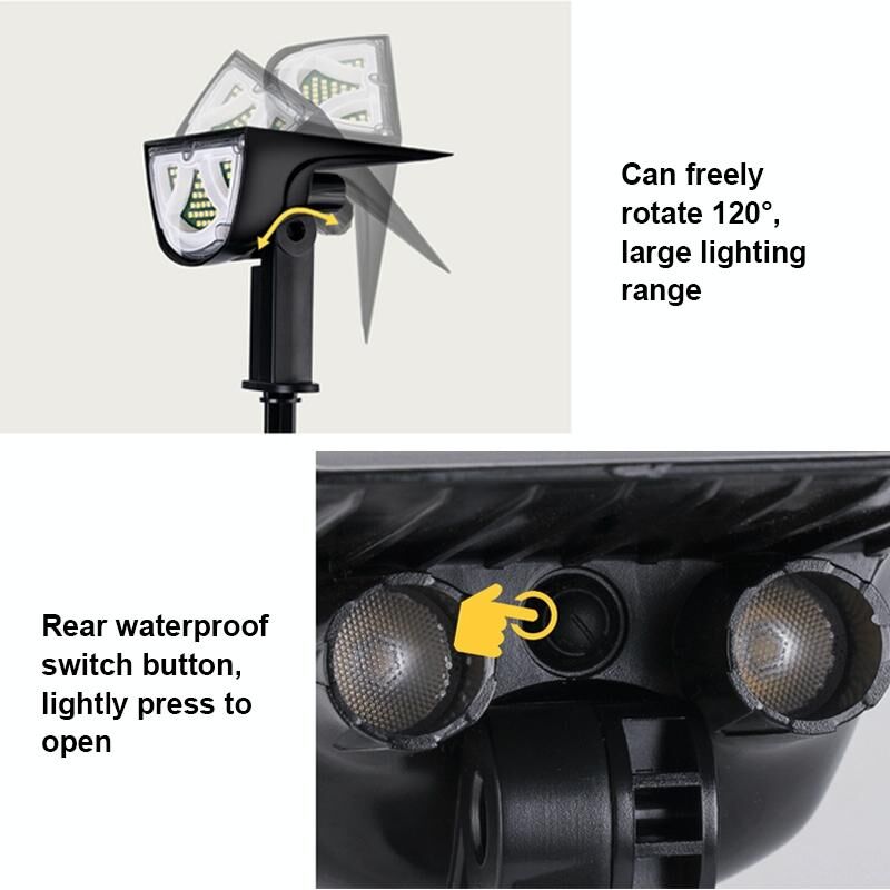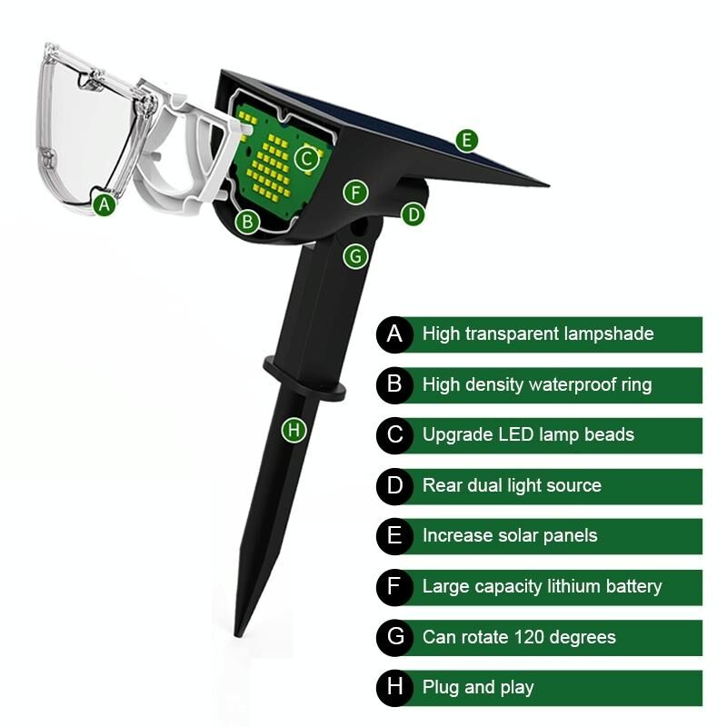 Φωτιστικό Προβολής Ηλιακής Ενέργειας Εξωτερικού χώρου, Αδιάβροχο IP65, LED, Φωτισμός Τοπίου, Κήπου, με Βύσμα Εδάφους, Διακοσμητική Λάμπα Γκαζόν (Λευκό Φως)