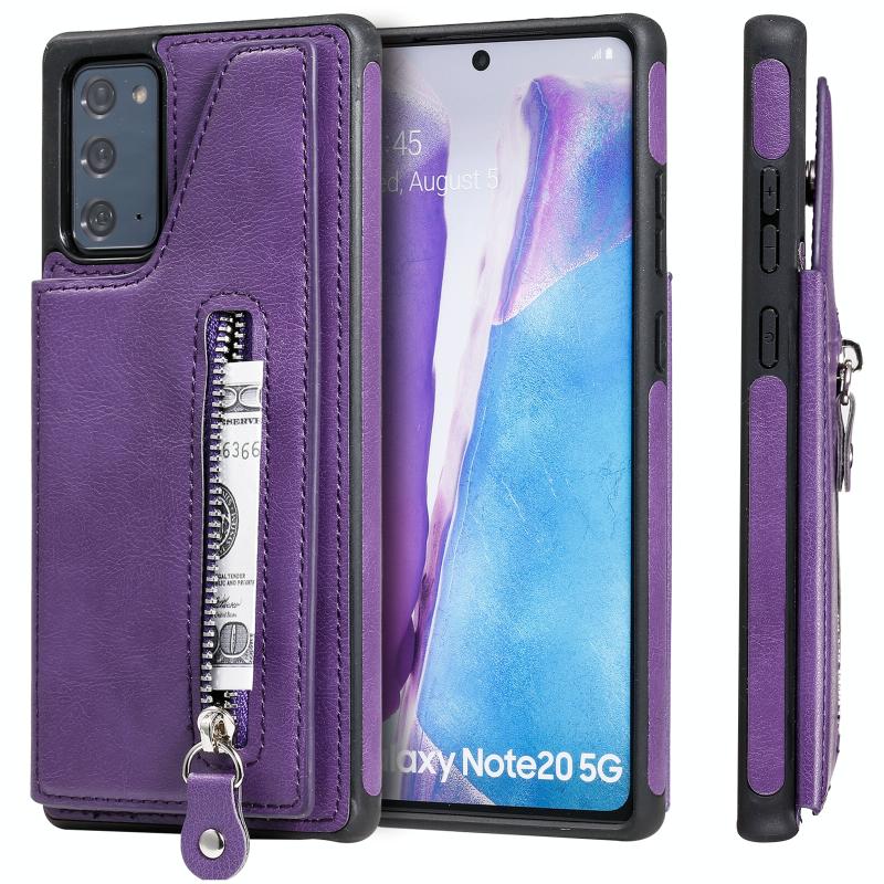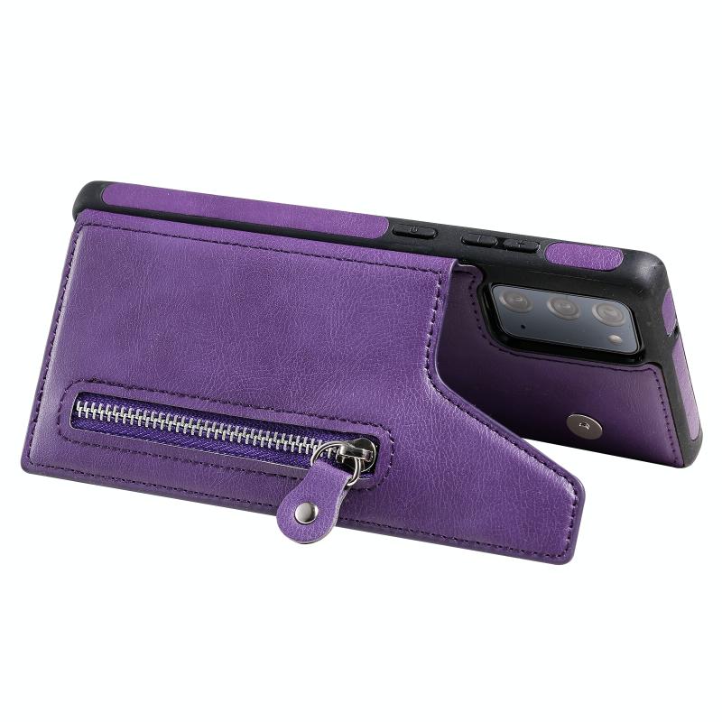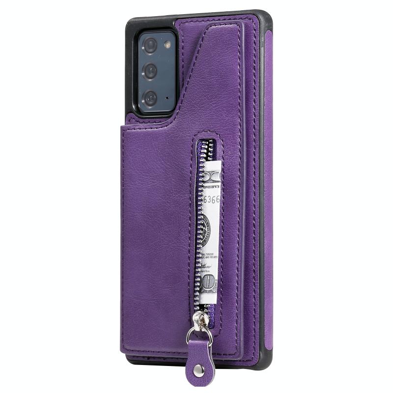 Solid Color Double Buckle Zipper Shockproof Protective Case For Samsung Galaxy Note20(Purple)