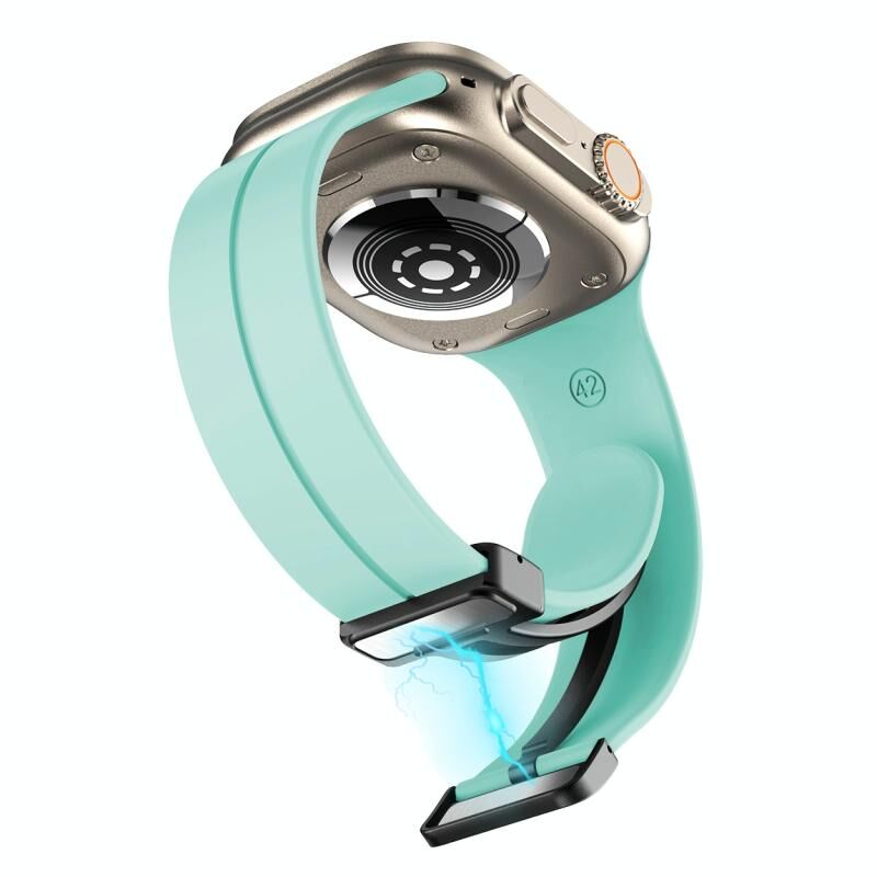 Λουράκι για Apple Watch με μαγνητικό κούμπωμα, από σιλικόνη, σε απλό χρώμα, για Series 9&8&7 41mm / SE 3&SE 2&6&SE&5&4 40mm / 3&2&1 38mm (Ανοιχτό πράσινο)