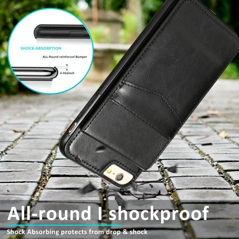 Solid Color PC + TPU Protective Case with Holder & Card Slots For iPhone 6(Black)