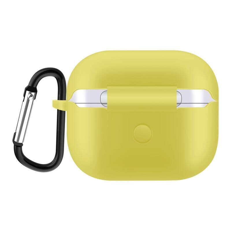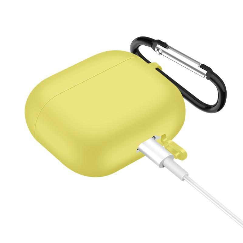 Solid Color Silicone Earphone Protective Case for AirPods 3, with Hook(Yellow)