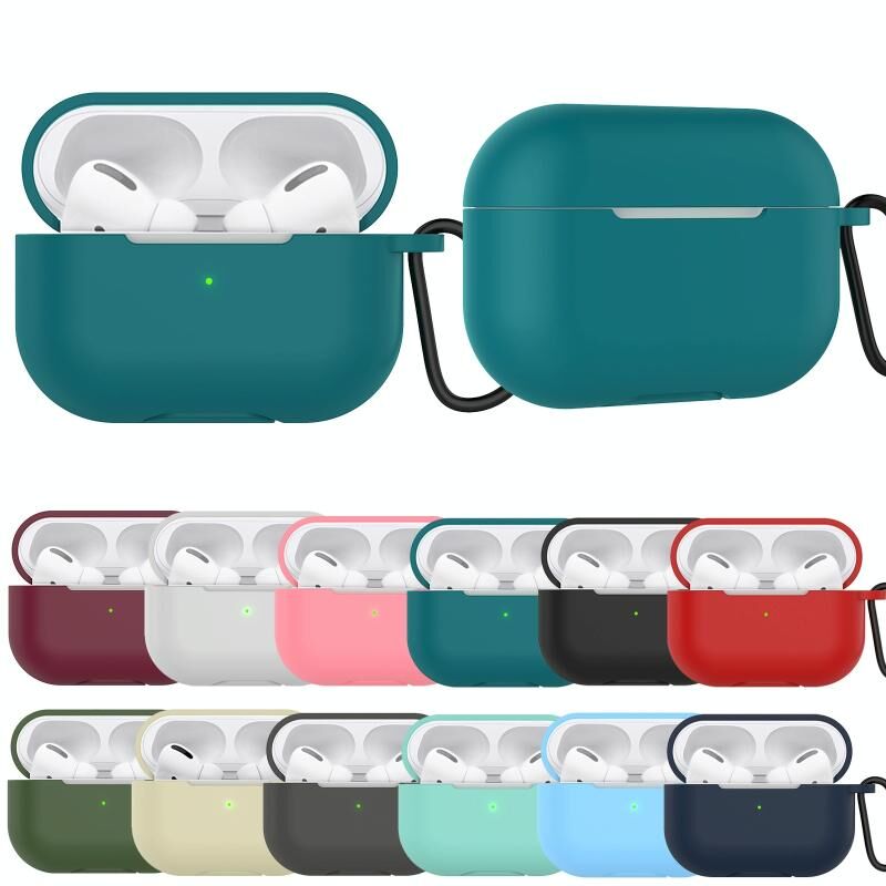 Solid Color Silicone Earphone Protective Case for AirPods Pro, with Hook(Dark Gray)