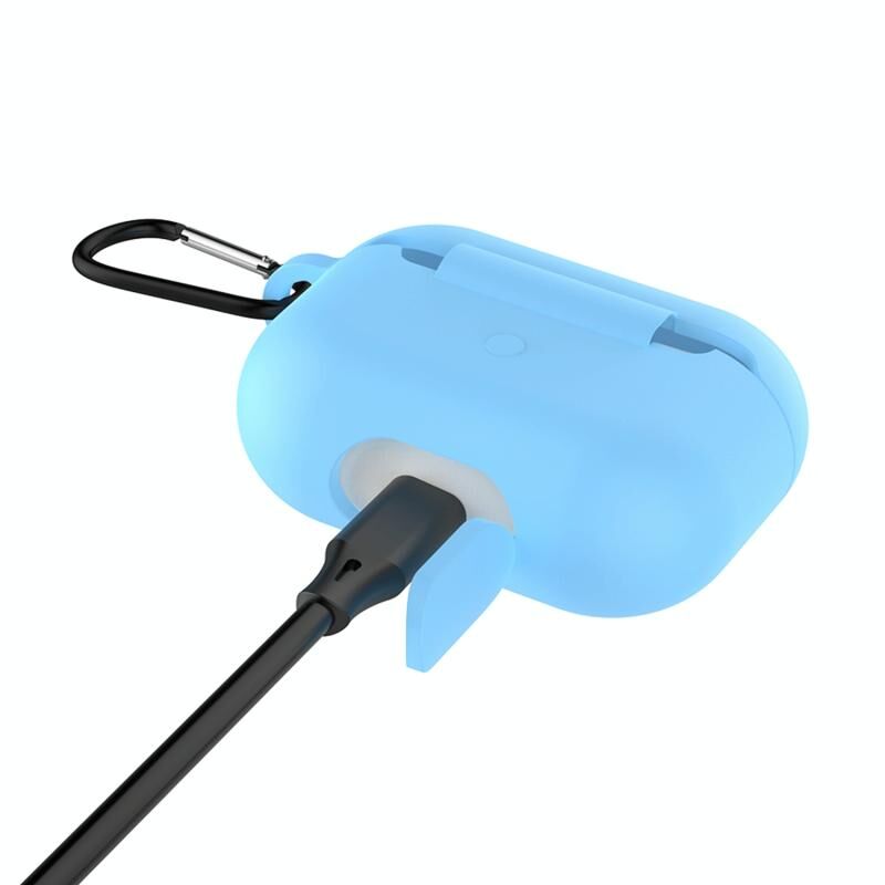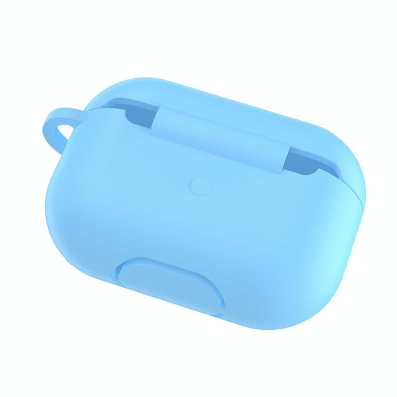 Solid Color Silicone Earphone Protective Case for AirPods Pro, with Hook(Sky Blue)