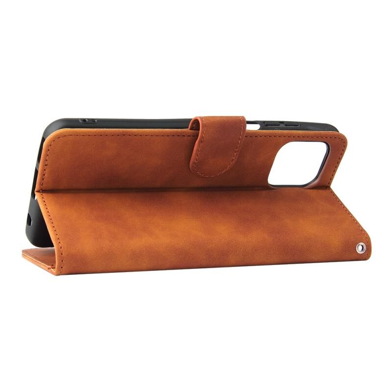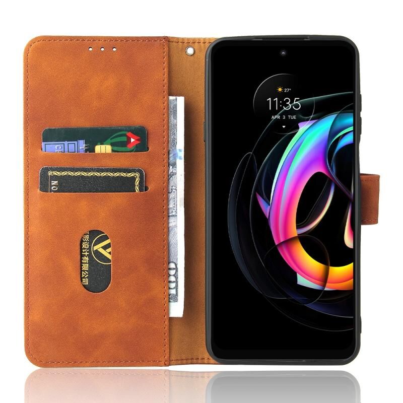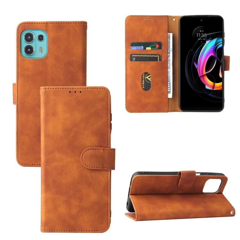 Αμιγές χρώμα δέρμα αίσθηση μαγνητική πόρπη οριζόντια Flip μοσχάρι υφή PU δέρμα υπόθεση με κάτοχο & υποδοχές καρτών & πορτοφόλι για Motorola Edge 20 Lite (Καφέ)