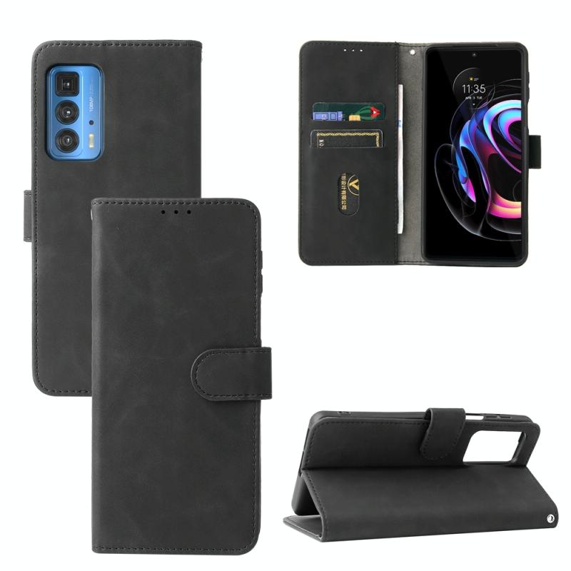 Solid Color Skin Feel Magnetic Buckle Horizontal Flip Calf Texture PU Leather Case with Holder & Card Slots & Wallet For Motorola Moto Edge 20 Pro(Black)